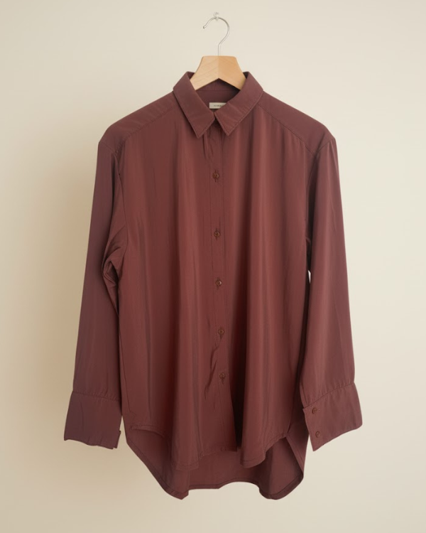 Camisa manga larga con terminación en puño ancho y doble botón, largo por debajo de la cola.