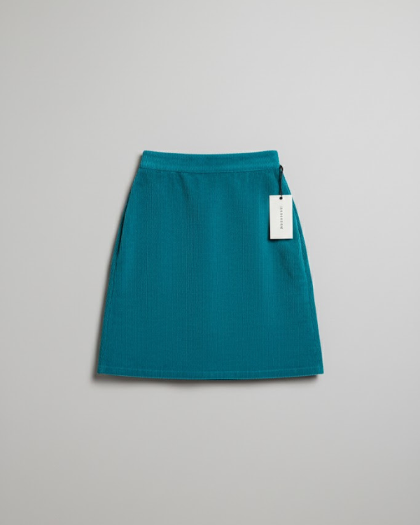 Mini falda recta con tajo al costado. Tiene elástico en los costados de la cintura, para lograr una mayor adaptación a las curvas del cuerpo.